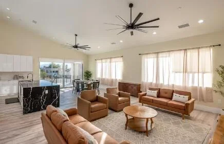 Situated on a quarter-acre lot in the sought-after B Bar H Ranch community, this newly built 4-bedroom, 4-bathroom home offers a perfect blend of modern luxury and investment potential. Located just 15 minutes from downtown Palm Springs, the property operates as a high-income short-term rental, generating $10,000-$12,000 per month. Designed for both relaxation and entertainment, this home features a brand-new pool and spa, a covered patio for outdoor dining, and a firepit for unforgettable desert evenings. Inside, the spacious floor plan is fully furnished and turn-key, offering a seamless transition for both homeowners and investors. Pickle ball court in back yard.