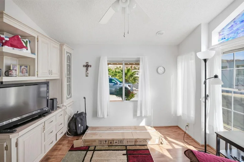 Welcome to your own private desert retreat -- where comfort meets breathtaking scenery! This beautifully maintained ~550 sq. ft. Park Model home offers the perfect blend of charm, efficiency, and relaxation. Featuring 1 bedroom and 1.5 baths, this thoughtfully designed space includes a dedicated laundry room with washer/dryer, fresh interior paint, new flooring, a newly coated roof, and a brand-new water heater -- giving you peace of mind and move-in-ready ease.Step outside to your wind-protected deck and soak in the spectacular mountain views that surround this spacious and serene property. Whether you're enjoying your morning coffee or an evening sunset, this outdoor space is your personal sanctuary. Covered parking and generous open areas add both convenience and privacy.Located in the highly sought-after Caliente Springs 55+ Resort, this vibrant and welcoming community offers resort-style living at its finest. Indulge in the healing mineral-fed hot spring pool and spas, stay active on the 9-hole golf course, challenge friends on the 8 pickleball courts or tennis courts, and enjoy a full calendar of planned events and activities. With a library, laundry facilities, and countless ways to connect and unwind, every day feels like a getaway.This isn't just a home -- it's a lifestyle.Come experience the warmth, beauty, and community waiting for you.Lot not owned. Space rent: $771/month.
