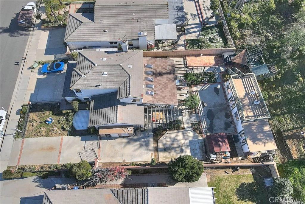 Welcome to the North Country subdivision in Diamond Bar. Featuring 4 bedrooms and 2.75 bathrooms with 1 large bedroom (no closet, but room to add a closet) and 1 bathroom downstairs. The home has been expanded from the original 1552 sf with a family room addition and a downstairs bedroom with an enlarged bathroom that boasts a shower for mobility challenged use. The unpermitted addition is 400 sf and 30 years old. It is well built with photo albums showing the construction- which will allow for ease of permitting in the future. A local Diamond Bar architect with many years of working with the city, has quoted appx $800 to $900 for engineering and $6200 for working plans and title 24. In addition, Diamond Bar will have permit fees. Vaulted ceilings flow through the living room as you enter the home. The kitchen was remodeled from original- offering a gas range, recessed lighting, and tiled countertops. There is a convenient office area or kitchen extension with a fireplace. Breakfast bar seating faces the kitchen from the family room. The upper floor features 3 bedrooms and 2 remodeled bathrooms. The spacious 10079 sf yard offers wonderful vistas of the snowcapped mountains from the elevated view deck which sits atop a 2-bedroom frame and stucco casita consisting of an additional 445 sf. The 2-bedroom outbuilding has electricity installed and water is possible. The slab and back wall and roof were permitted- however, later on the owner enclosed the building without permits- but in a professional manner. Extra-large gated RV parking and multiple storage sheds. Relax in the newer spa that was added in 2024. The HVAC was upgraded circa 2015. The home has been recently repiped with copper- for many years of carefree living ahead! New skylights mid March 2026. A new rollup 2 car garage door and opener were added in 2022. Walk to Peterson Park which has lighted soccer fields and a baseball diamond. A skateboard park is an additional highlight. Award winning schools consist of Diamond Ranch High, Lorbeer Middle School, and Diamond Point, Pantera, or Golden Springs Elementary. Diamond Bar's motto is "Country Living."