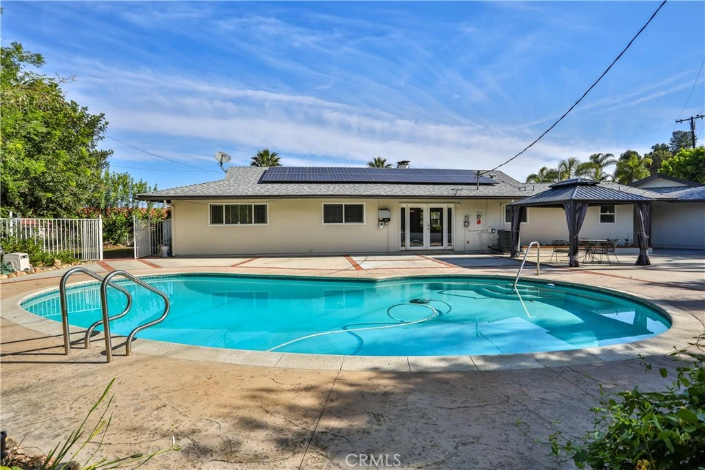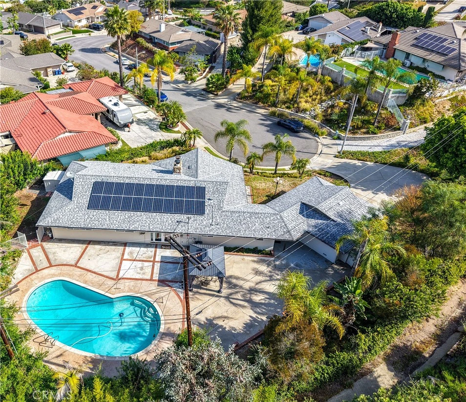 WELCOME TO 561 CROOKED ARROW DR, A PRIVATE HILLSIDE RETREAT IN THE HEART OF DIAMOND BAR. This beautifully maintained 3 Bedroom, 2 Bathroom home in a quiet Cul-De-Sac featuring a relaxing POOL in the LARGE BACKYARD-the perfect balance of comfort, style, and outdoor living. Walk up the red brick steps walkway leading to the front and inside, discover a bright and warm open-style interior with a dining room open to the upgraded, beautiful galley kitchen, and a gorgeous view of the relaxing pool and lush green plants and trees surrounding the large backyard. Plenty of room to entertain! Inside the upgraded living/family room has a cozy fireplace, and large picturesque windows with views of the large front yard and side courtyard, and there are peek-a-boo hillside views all around! The spacious kitchen features custom dark wood cabinets, granite counters, accented with a tastefully designed stone backsplash, stainless steel appliances, a double-oven with a thoughtful galley counter for a convenient breakfast or dining. This open-style kitchen flows nicely into the dining room and out through the double French doors to the pool. This home is perfect for gatherings and everyday living alike. A bonus side yard in the back area that is fully fenced. The master bedroom has double closets and the master bathroom has a beautifully designed stone walk-in shower. The second bath has an elegantly designed stone shower over a jetted tub. All bedrooms are generously sized, with each room with sweeping views of the outdoors. In the backyard, steps lead up to mature trees and plants in a resort-like atmosphere with lots of privacy and charm. Additional highlights include: Solar Panels that are easily transferable to new owners, a newer roof, an end-of-cul-de-sac home, freshly painted inside and outside, outside sheds, a functional and convenient water softener, plantation shutters, recessed lighting, upgraded finishes throughout, and a convenient location near shopping, dining, award-winning schools, golf courses, and 57 and 60 freeway access. This home offers not just a place to live, but a lifestyle—perfect for those who value both serenity and entertainment. Don’t miss this unique opportunity to own a hillside gem in Diamond Bar!
