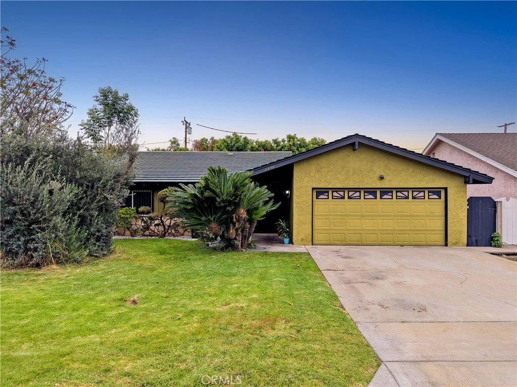 Welcome to this 3-bedroom, 2-bath home on a cul-de-sac. The living room features high ceilings and a fireplace, and the kitchen has granite countertops. The primary bedroom includes its own bathroom with a walk-in shower, while both bathrooms have tile finishes. The home has central air and heating, along with double-pane windows for everyday comfort. Step outside to a private backyard with an inground pool and spa, perfect for relaxing or having friends and family over. The attached 2-car garage includes washer and dryer hookups. The seller is also including a water filtration and reverse osmosis (RO) system, a great added feature that provides clean drinking water right at home. Located just minutes from Stauffer Middle School, Los Amigos Golf Course, and Warren High School.