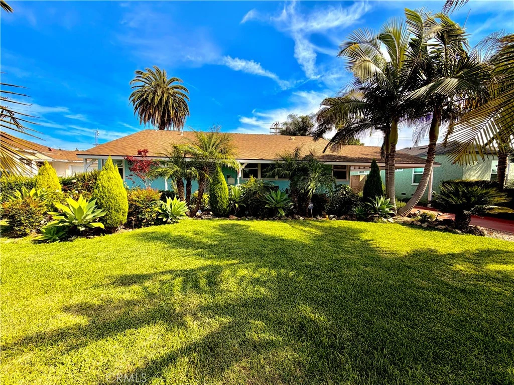 Welcome to this beautifully upgraded, custom-built pool home in the heart of Downey—a proud winner of the City of Downey Beautification Award! Set on a spacious 8,000+ sqft lot, this meticulously maintained property greets you with exceptional curb appeal, professional landscaping, and a wide front porch perfect for relaxing among fragrant flowers. Recently painted inside and out, the nearly 2,200 sqft interior features a seamless blend of original and new hardwood flooring, porcelain tile, and exquisite custom woodwork throughout. The updated kitchen boasts custom oak cabinetry with pantry, blue pearl granite countertops, full backsplash, peninsula seating, Kohler fixtures, and a vintage Thermador electric stove, oven, and broiler in perfect condition. This home includes four spacious bedrooms—three with custom ceiling fans and one with porcelain tile, marble accents, recessed and pendant lighting—and two fully remodeled bathrooms with designer Kohler fixtures, marble and porcelain finishes, cast iron tub, custom double vanity, and elegant lighting. The formal dining room, large living room with marble wood-burning fireplace, and step-down den with a second fireplace and pool views create inviting spaces for entertaining and comfort. Additional highlights include new double-pane windows with plantation shutters, whole house fan, attic cooling system, separate laundry room, and hallway with French doors. The oversized detached double garage, with a new roof and air vent, offers potential for an ADU, while the covered carport features a professional-grade hoist for car enthusiasts. There’s also ample RV/boat parking with a 250V hookup and a long driveway that accommodates up to 10 vehicles. The private backyard oasis includes a sparkling exercise pool and a fully powered tiki house, making it ideal for summer gatherings. Centrally located near top-rated schools, parks, shopping, golf courses, and freeways, this luxurious, move-in-ready home offers unmatched comfort, character, and income potential!