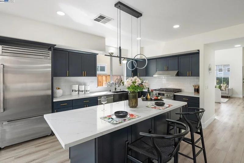 Stunning luxury home in East Dublin's sought-after Summer Glen community, bathed in natural light and just a short walk to top-rated Dougherty Elementary-every buyer’s dream with young kids! This open floor plan features soaring ceilings and a newly updated gourmet kitchen with ample cabinetry, quartz countertops, a stylish backsplash, a huge island, and brand-new stainless steel appliances, including a built-in refrigerator. The home offers a spacious family room, living room, and dining area with a custom accent wall Boasting the area. 4 bedrooms plus a den/optional 5th bedroom and 3 beautifully updated bathrooms, this home includes a bedroom/den and a full bath on the main level. Enjoy updated laminate flooring throughout, recessed lighting, a stunning chandelier, fresh interior and exterior paint, and modernized bathrooms reflecting today's trends. Additional features include leased solar, a water softener, custom paint, and epoxy flooring in the garage. Step outside from the kitchen into a beautifully landscaped backyard with mature palm and fruit trees—perfect for entertaining. Walk to shopping centers, restaurants, a theater, Wave Waterpark, Emerald Glen Park, and scenic waterfalls for peaceful strolls. Fallon Sports Park is just minutes away. Easy access to 580/680, BART.