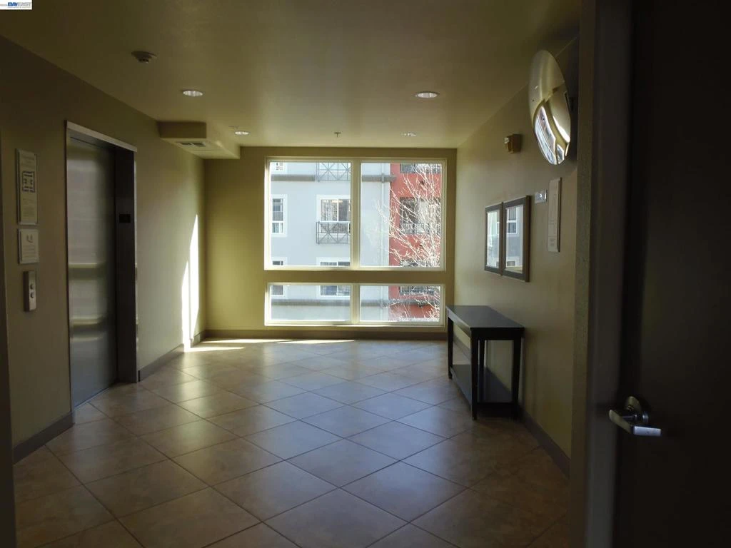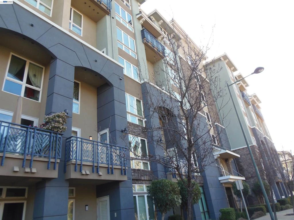 Perfect location! This 2bed/2bath condo is located on the 4th floor facing the garden and patio area. It is outside the enclosed hallway providing fresh air as opposed to being in the interior of the building. It features a larger floor plan and balcony than other 2 bedroom units. The cathedral ceilings in the living area provides an abundance of light. The loft on the second floor is an added bonus and perfect for a home office. The primary bedroom is on the second floor and a large second bedroom is on the first floor. Features include granite counters, laminate wood flooring on the first floor and carpeting upstairs. A washer and dryer is provided with the condo and is on the second floor. Other features of this Elan development include a fitness center, game room, gated 2 car tandem garage parking spaces, secured building access and parking and also guest parking. This location is a short block from BART. There is easy access to the 580/680 freeways, Whole Foods market, numerous restaurants, retail shops and Regal Cinemas movie theater. Your rent includes water and garbage. Available 3/27/26. Please note: this property requires a minimum credit score of 725 for everyone 18 years of age and older.