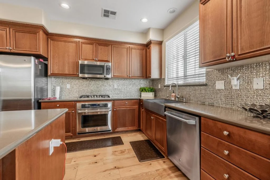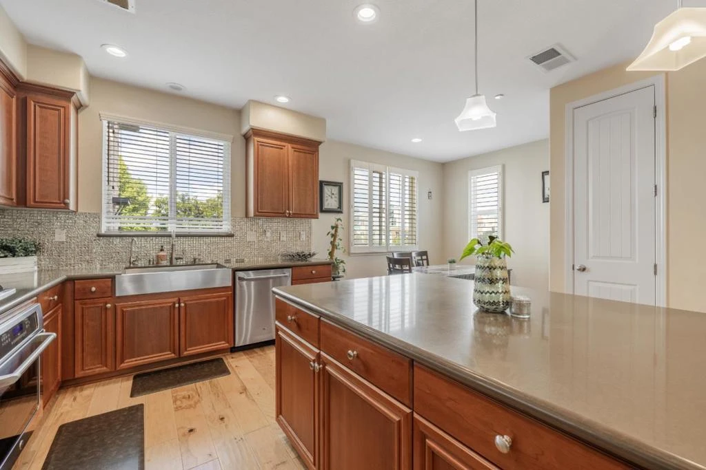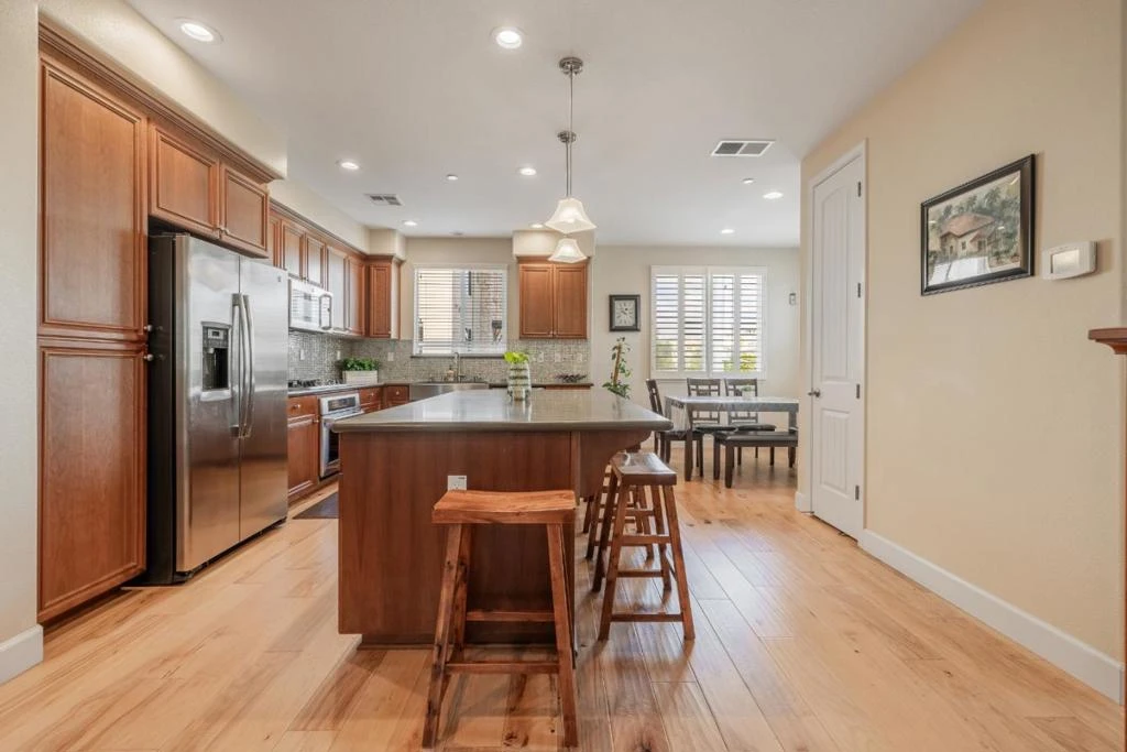 Welcome to this beautifully maintained corner/end-unit townhome in the highly desirable Esprit community of Dublin. Built in 2014, this spacious home offers approximately 1,598 sq ft of thoughtfully designed living space, featuring an open, light-filled layout with enhanced privacy and natural light. The main level showcases a bright open-concept living and dining area that flows into a well-appointed kitchen with modern cabinetry, ample counter space, and a large island ideal for everyday living and entertaining. The home is enhanced with approximately 80K in builder upgrades, including hardwood flooring and quality finishes throughout. Upstairs features 3 bedrooms and 2.5 bathrooms, including a spacious primary suite with an ensuite bath and walk-in closet. A convenient upstairs laundry area adds everyday functionality. Additional highlights include an attached 2-car garage with extra storage space and a kids playground located directly in front of the home. Residents enjoy a low HOA of approximately $250/month. Ideally located near top-rated schools, parks, shopping, dining, and the Dublin/Pleasanton BART Station, with easy access to I-580 and I-680.