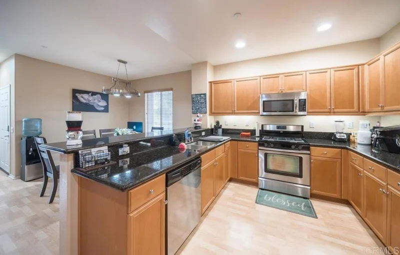 Rare opportunity to own a beautiful townhome in the heart of San Diego! This spacious home features an open floor plan with tall ceilings that create a bright and inviting atmosphere. Offering 3 bedrooms, 2 full bathrooms, and a convenient half bath on the main level, along with a large laundry room for added functionality. The kitchen is perfectly positioned and features stainless steel appliances, granite countertops, and an open layout that flows seamlessly into the dining area—perfect for entertaining. The home also includes a 2-car tandem garage with epoxy floors and plenty of storage space. As a top-floor end unit, this home offers extra privacy and truly feels like a standalone home. Enjoy the large west-facing balcony, perfect for relaxing and taking in beautiful sunsets. Low HOA fees and the complex is FHA and VA approved, making this an excellent opportunity for a wide range of buyers.
