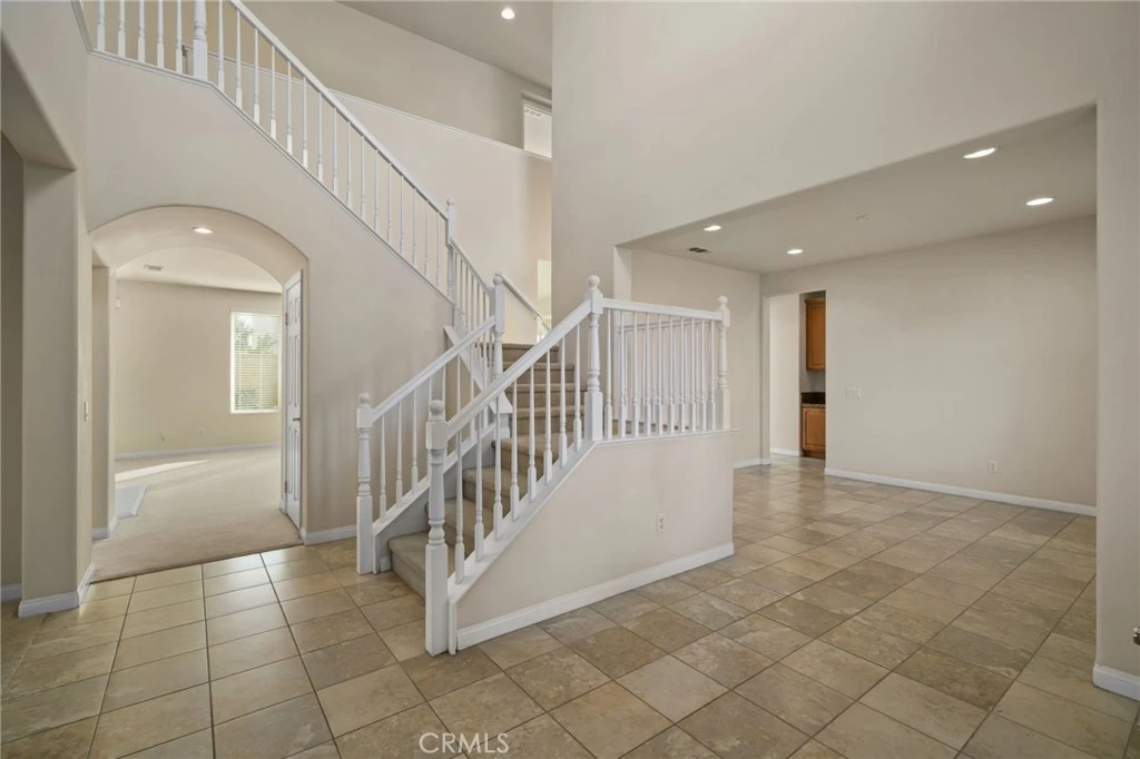 Welcome home to this beautifully maintained, original-owner Pulte-built residence in a desirable Eastvale neighborhood, showcasing high ceilings, tall doors, and a bright, open layout. With recently freshly painted exterior, this home offers standout curb appeal with lush landscaping, a charming front porch, and the rare convenience of two driveways and dual garages. Inside, you’re welcomed by tile flooring, an open staircase, and spacious formal living and dining rooms. The inviting family room features a cozy fireplace, media niche, and large windows that fill the space with natural light, seamlessly connecting to the kitchen. The well-appointed kitchen includes granite countertops, abundant cabinetry, a walk-in pantry, and a butler’s pantry, with sliding doors leading to the backyard. A main-floor bedroom and full bathroom, along with an indoor laundry room with sink and storage, add everyday convenience. Upstairs offers a thoughtfully designed layout with generously sized bedrooms, including a Jack-and-Jill bathroom setup, additional full bath with dual sinks, and a spacious primary suite featuring dual vanities, soaking tub, walk-in shower, and an oversized walk-in closet. Step outside to a backyard complete with a cement patio and expansive grassy area, ideal for entertaining or relaxing. Conveniently located near top-rated Eastvale schools, parks, shopping, dining, and major commuter routes. No HOA and no solar, providing added flexibility and value. This home offers the perfect blend of space, quality, and location—don’t miss this opportunity!