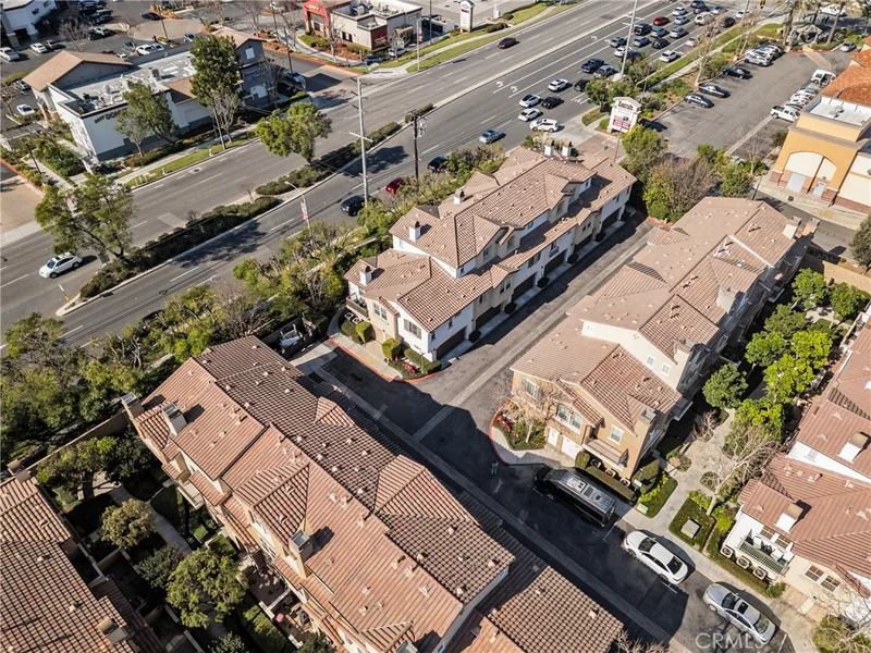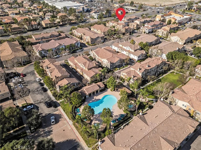 Location, Location, Location! Highly desirable corner unit in a gated community with only one shared wall, offering exceptional privacy. This beautiful 2-bedroom, 2.5-bath home features a convenient downstairs bedroom with a full bath, ideal for guests or multi-generational living. Enjoy easy access with an attached 2-car garage. The bright, open floor plan is warm and inviting, highlighted by a cozy fireplace in the living room that adds an elegant touch. Upstairs, a private balcony off the loft area provides the perfect space to relax. Move-in ready and fully equipped with all appliances included, including washer, dryer, and refrigerator. Located within top-rated schools, including Eleanor Roosevelt High School, and conveniently close to the 15 and 60 freeways for an easy commute. Just minutes from Costco, major shopping centers, fine dining, and entertainment. The HOA includes water and trash and offers resort-style amenities such as a pool, jacuzzi, basketball court, playground, and BBQ area. Property is VA approved! Come on in and make it yours!