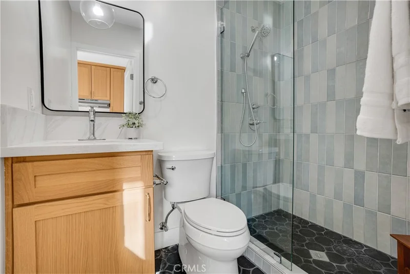 Tucked into the hills of Elysian Heights, this beautifully restored bungalow blends classic California character with refined modern design. Extensively updated while honoring the integrity of the original home, it offers a rare opportunity to own a century-old residence in true turnkey condition. Natural light moves easily through the open living and dining spaces, creating warmth and flow throughout. The interiors have been thoughtfully reimagined with cohesive finishes and a balanced mix of vintage charm and contemporary detail. The fully renovated kitchen features custom oak-tone cabinetry, mitered-edge stone countertops, and new stainless steel appliances. The bathroom has been redesigned with floor-to-ceiling blue vertical stack bond tile and black hexagonal flooring, delivering a clean, timeless aesthetic. Modern comforts include central air conditioning, energy-efficient windows, indoor washer and dryer hookups, and a brand new roof, providing the ease of updated living within a character-rich home. Set behind a private gated drive, the property offers rare three-car parking and a detached garage with a new roof and door, ideal for flexible use as a studio, gym, or additional storage. The backyard extends the living space outdoors, offering privacy within one of Echo Park’s most desirable hillside enclaves. Just moments from sought-after Eastside destinations including Echo Park Lake, Dodger Stadium, Canyon Coffee, and Downtown Los Angeles, offering both convenience and retreat in one of the Eastside’s most dynamic neighborhoods. Public records reflect a 1-bedroom home. Property functions as a 2-bedroom with the second bedroom featuring direct exterior access to the private backyard. Approximately 759 square feet per professional floor plan. Buyer to verify all information, including square footage.