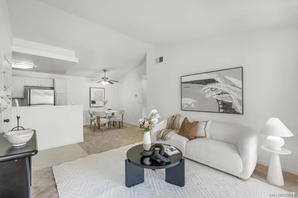 Located in Rancho San Diego's coveted Villa MonteVina complex, this upper-level condo features striking panoramic mountain views throughout every room, high vaulted ceilings, central heat/AC, in-unit laundry, brand new carpet, fresh paint, newly updated cabinets, and a glass-enclosed balcony with additional storage closet that overlooks your view to relax. The kitchen features stainless steel appliances, stone counters and tons of cabinet space. The Villa MonteVina community offers two pools & spas, a gym, sauna, tennis & racquetball courts, playground, BBQ's, clubhouse, plenty of guest parking and paid water, trash & sewer utilities. It's conveniently located walking distance to Cuyamaca College and minutes to shopping, dining, grocery stores, theaters and more. Don't miss this opportunity for a great rental investment or move-in-ready home!