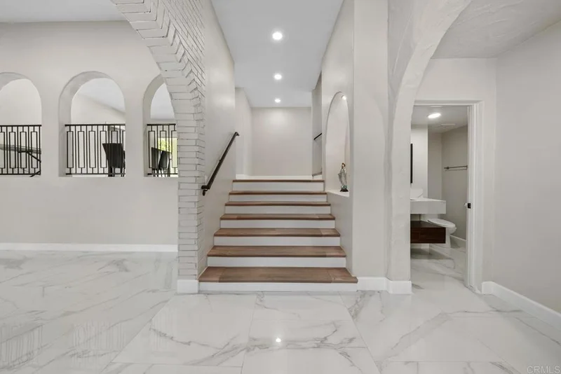 Custom Built Rancho San Diego hilltop estate with Spanish style design and modern interior upgrades! This home offers sweeping mountain views and an occasional peek view of Coronado Island from multiple balconies. Double door Entrance greets you to vaulted ceilings and a recently fully remodeled open floor-plan! The Gourmet kitchen features custom white cabinetry, quartz counter-tops, an extra-large subzero fridge, double ovens, and a large island that opens up to your nook eating area as well as the family room area! The family room offers a modern style fireplace and three sliding glass doors that take you out to the backyard area! The Backyard offers custom pool, jacuzzi, large sunbathing deck w views, covered patio area as well as plenty of room to entertain your family & guests! This expansive lot has room to build an ADU or add motor home parking if desired. Large Master-Suite offers gorgeous views, fireplace, walk-in closet completely built out & a gorgeous master bath w separate bathtub and stand-up shower! Fruit trees, including Mulberry, avocado, orange, tangelo, Peach, guava, lemon, apricot, Cheremoya and more! A large driveway suitable for six cars, paired with an oversized garage ensure you will have plenty of parking for any guests. Come live the good life in this quiet neighborhood of East County!