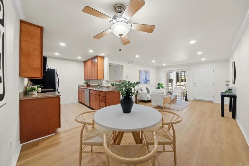 Welcome to this beautifully updated 2-bedroom, 2-bath VA-approved condo located in a secure gated community. This bottom-floor unit offers the perfect combination of comfort, convenience, and modern upgrades. Step inside to find fresh interior paint, brand-new flooring, recessed lighting, and updated appliances, creating a bright and inviting space ready for its next owner. The home also features new windows and new blinds, allowing for plenty of natural light while maintaining privacy. Enjoy the convenience of in-unit washer and dryer, along with two dedicated parking spaces. Every detail has been thoughtfully updated, making this truly move-in ready. With a low HOA and beautifully maintained community, this is easily one of the nicest units in the complex. Ideal for first-time homebuyers, VA buyers, or anyone looking for a turnkey home in a gated San Diego community. Don’t miss this opportunity — come see it for yourself. This one is a must-see!