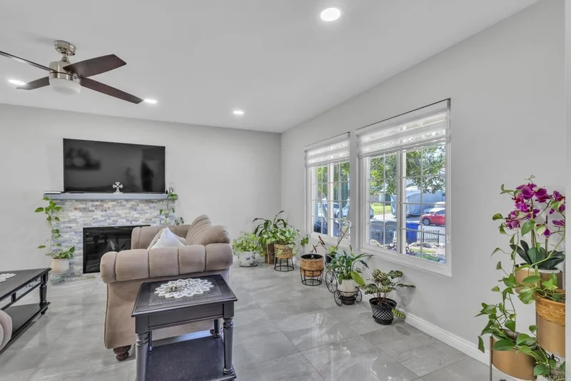 Located in a beautiful neighborhood in El Cajon, this stunning home was fully renovated approximately three years ago and offers a modern, move-in-ready feel throughout. Home has 26 PAID OFF solar panels. This beautiful home features 4 bedrooms, 2.5 bathrooms, and 2,176 sq ft of living space. Step inside to tile flooring on the first floor, recessed lighting, upgraded baseboards, ceiling fans, and blinds that complement the home’s clean, contemporary design. The spacious layout features two cozy fireplaces, one in the living room and another in the family room, creating warm and inviting spaces for both relaxing and entertaining. The fully upgraded kitchen boasts modern cabinetry, stylish countertops, and updated appliances, making it both functional and beautiful. Bedrooms include mirrored closet doors, adding light and a sleek touch to each space. Outside, enjoy beautifully landscaped front yard curb appeal and a covered garage for convenience. This thoughtfully updated home blends comfort, style, and location, a true gem in El Cajon.