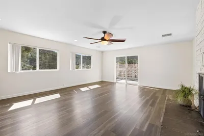 Welcome to this beautifully updated 3-bedroom, 1-bath home offering 1,035 sq ft of comfortable, move-in-ready living. Thoughtfully remodeled in 2019, this home features a newer roof, energy-efficient dual-pane vinyl windows, upgraded AC system, and a stunning modern kitchen complete with stainless steel appliances and laminate flooring throughout the main living areas. Recently refreshed with a fresh coat of paint and brand-new carpet, this home blends style, comfort, and functionality. A charming covered front porch overlooks the low-maintenance front yard, creating a welcoming space to relax, sip your morning coffee, or unwind in the evenings while enjoying the peaceful setting. Step outside to a spacious backyard that’s truly a blank canvas—ideal for adding a pool, ADU, RV or boat parking, or creating your dream outdoor retreat. A beautiful mature oak tree adds natural shade and character, creating the perfect setting for outdoor gatherings. The expansive deck off the living room is perfect for entertaining or unwinding while taking in peaceful mountain views. Additional features include a 2-car garage with laundry and a versatile basement space that offers excellent potential for a home office, gym, or additional living area. Situated on a quiet street just 10 minutes from the freeway, this home offers both tranquility and convenience. Located near the highly sought-after Alpine school district and just minutes from Sycuan Casino, this is a rare opportunity to own a turn-key home with room to grow.