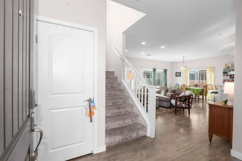 Assumable 4.25% VA Loan | Corner Lot | Paid Solar | No Mello-Roos THIS IS YOUR HOUSE! Welcome to this stunning move-in ready home built in 2020, offering modern comfort in a secure gated community. Situated on a desirable corner lot, this beautifully maintained residence features 3 spacious bedrooms, 2.5 bathrooms, and a 2-car garage, designed for both style and functionality. The open and inviting floor plan is perfect for everyday living and entertaining. The primary suite features a large walk-in closet, creating a private and comfortable retreat. Step outside to your backyard entertainment space, ideal for relaxing or hosting family and friends. Enjoy energy efficiency with paid solar panels and a tankless water heater, helping lower utility costs while providing endless hot water. The HOA maintains the front landscaping, giving you a beautifully maintained exterior without the hassle. Conveniently located with easy access to major freeways, shopping, and public transportation, this home is just minutes from vibrant downtown San Diego dining, entertainment, and waterfront attractions. Bonus: All appliances convey with the home. Don’t miss the opportunity to own this exceptional property that blends comfort, efficiency, and location.