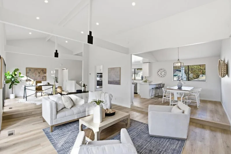 Welcome to this beautifully updated 3-bedroom, 2.5-bath El Granada Highlands home. Offering approximately 1,890 sq ft on a 5,581 sq ft lot, this move-in-ready property features a functional, well-designed layout with generous living spaces. The main living room just off the kitchen showcases vaulted ceilings, recessed lighting, fireplace and direct access to the decks, creating seamless indoor-outdoor flow and capturing peek-a-boo ocean and hillside views. The spacious floor plan provides comfortable separation between living and sleeping areas, offering flexibility for everyday living, dedicated work-from-home space, or hosting guests. The home has been updated with new luxury vinyl plank flooring, and refreshed painting throughout. The kitchen features new cabinetry, quartz countertops, stainless steel appliances. Enjoy serene eucalyptus forest vistas from this elevated Highlands setting. Located just minutes from Pillar Point Harbor, Surfer's Beach, the coastal trail, mountain biking, shops and dining, this home offers the space, upgrades, and an ideal location.