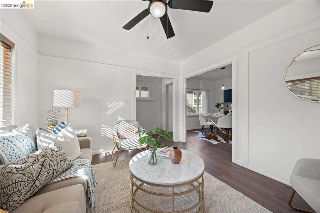 Charming Emeryville bungalow offering 2+ bedrooms & 1.5 baths. Step inside to a sun-drenched living room & dining room w beautiful built-ins. The spacious eat-in kitchen features stainless steel appliances. The large main-level primary bedroom is situated in the back of the house w a large closet, while upstairs offers a cozy second bedroom w en suite half bath, plus a bonus office or study—ideal for working from home. The main floor bathroom is beautifully updated w a deep tub. There is a low maintenance backyard complete w a storage shed for added convenience. Additional highlights include stackable washer/dryer, dual pane windows, updated electric panel & wire, newer roof, & a mini-split system for efficient heating and cooling. Fenced shared driveway for off street parking. 91 Walk Score® & 98 Bike Score®! Ideally located near Temescal, Downtown Oakland, & the Emeryville Public Market, with easy access to shopping, dining, coffee, movies, & everyday amenities. Commuters will love the proximity to BART, Amtrak, AC Transit, and major freeways —making travel to San Francisco, Berkeley, Oakland and beyond a breeze. Attn: first time homebuyers, SF commuters, investors don’t miss this convenient turn key opportunity. Pass on that condo w the high HOA & buy this adorable bungalow!