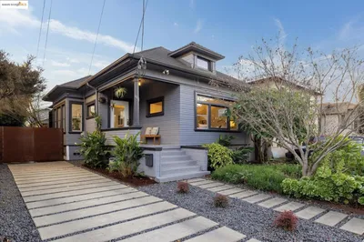 Open House: Saturday 1:00-4:00pm and Sunday 1:00-4:00pm Modern updates meet classic Longfellow Craftsman charm in this spacious, solar-powered 5-bedroom, 2.5-bath home. Thoughtfully upgraded throughout, the home is move-in ready with fully paid solar, a Nest thermostat, and 23 new energy-efficient windows for year-round comfort and lower utility costs. The remodeled kitchen features quartz countertops, a center island, stainless steel appliances, and modern tilework, opening into bright and inviting living spaces. The primary suite offers a private retreat with French pocket doors, coved ceilings, and a walk-in closet. A light-filled living room with bay windows, a generous great room with fireplace, and three downstairs bedrooms with hardwood floors provide flexible living for a variety of needs. Upstairs, a separate-entry suite, already plumbed for a kitchen, creates an ideal opportunity for an in-law unit, guest space, or income potential. (Buyer to verify) Additional highlights include a detached garage perfect for a workshop or gym, EV charger, new washer and dryer, updated garage with new siding and roof, and custom lighting by a local East Bay artist. Enjoy a productive lemon tree and a convenient location just moments from BART with easy access to I-580 and I-80.