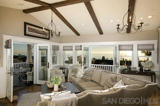 Custom beach home with high-end upgrades and breath-taking panoramic ocean views. Luxurious upgrades include plank wood flooring, wood beam ceilings, Carrera marble counter tops, custom window treatments, ledger stone fireplace, steam shower in the master bath and so much more! The unique bedroom configuration includes the master and guest room in the main part of the home and the third bedroom and bathroom having a private entrance through the courtyard. Truly a spectacular property! Range pricing based on month and length of stay. Property has an additional unit in back with separate entrance, parking and space. This is rented separately with another tenant occupying it.