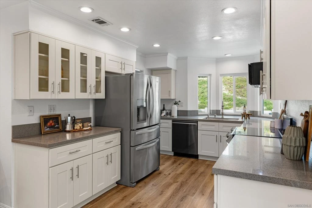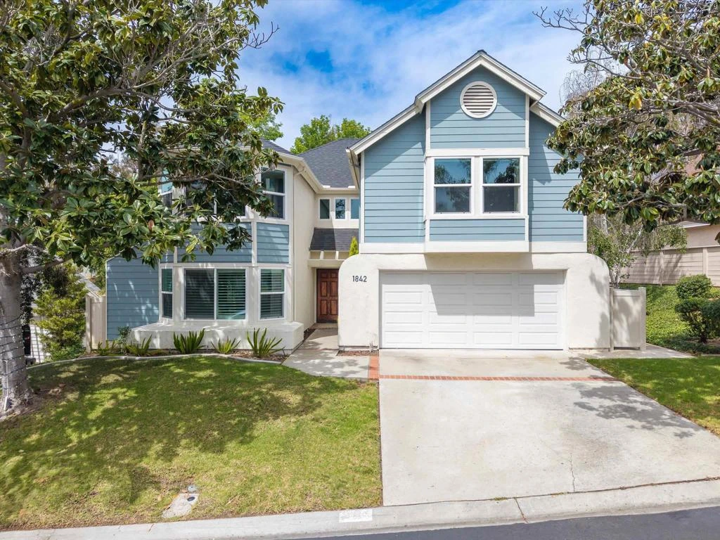 Tucked away on a serene cul-de-sac in the desirable Pacific Ranch neighborhood of Encinitas, this beautifully updated, five-bedroom, four-bathroom residence offers a spacious, bright floor plan in an ideal location. The kitchen is a place for cozy comfort with a quiet breakfast nook or seating area attached. The living room’s wide open space with vaulted ceilings leaves plenty of room to spread out, and opens up to the private back yard with views of surrounding greenery. The layout is multi-generational friendly with a bedroom and a full bath on the main level. Upstairs, the bathrooms have been tastefully updated to reflect the home's clean, warm aesthetic, and the layout is designed for effortless everyday living. Outside the front door, Pacific Ranch delivers the kind of community lifestyle that's hard to find. A community pool, spa, tennis courts, and park are all within walking distance — rare amenities that elevate daily life. Moonlight Beach, one of Encinitas' most beloved stretches of coastline, is less than 10 minutes away. Top-rated Encinitas Union School District schools, Cottonwood Creek Park, the Encinitas Community Park, and the shops and restaurants along El Camino Real and Encinitas Boulevard are all just minutes from your door. With the major updates already done and a location that puts the best of coastal North County living within easy reach, 1842 Bel Air Terrace is truly move-in ready.