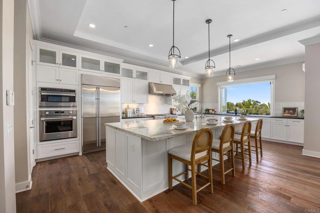 Perched in one of the most coveted locations within 1 Channel Island, this exceptional Single-Level residence captures the essence of refined coastal living in Encinitas. Bathed in natural light, the home showcases soaring ceilings, modern finishes, and a seamless indoor-outdoor flow designed for effortless living and entertaining. The open-concept layout centers around a stunning chef’s kitchen with an oversized island, quartz countertops, premium stainless steel appliances, and sweeping Ocean Views. Outside, a private resort-style retreat awaits—complete with a pool, spa, sauna, outdoor shower, and a covered patio with infrared heaters, all framed by ocean breezes and vibrant sunsets. The primary suite offers a luxurious, spa-inspired escape with a customized walk-in closet. There’s are two additional bedrooms plus an office/flex space which offers flexibility and comfort. The third bedroom is en-suite with a thoughtfully designed oversized bathroom with direct backyard access - a value enhancing upgrade you won’t find in the other builder’s models. Set on a quiet cul-de-sac and enhanced by an expanded fully owned solar system, this home blends luxury, efficiency, and the relaxed sophistication of Southern California coastal living—an exceptional opportunity in a truly premier setting.