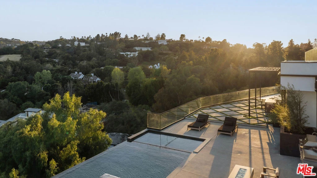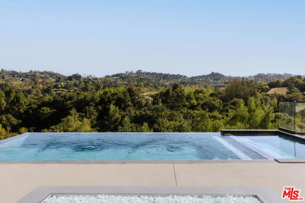 Welcome to a truly exceptional estate in the prestigious Royal Oaks enclave of Encino, where elevated design, breathtaking views, and modern luxury come together seamlessly. Meticulously curated materials and finishes are showcased throughout this five bedroom plus an office, nine bathroom residence. Upon entry, soaring ceilings, expansive walls of glass, and a light-filled open layout create a seamless connection to the surrounding landscape. A striking titanium gold staircase with an integrated water feature serves as a sculptural centerpiece, setting the tone for the level of design and detail carried throughout. The formal dining room is complemented by a temperature-controlled wine cellar, while a nearby powder room is finished in Brazilian green marble, adding a refined touch. The culinary experience is elevated through a dual-kitchen concept. The main kitchen showcases a fluted natural stone island and white onyx countertops paired with custom German cabinetry, finished with aluminum and leather accents. A secondary kitchen provides additional functionality, ideal for both everyday living and entertaining. The primary suite serves as a private sanctuary, capturing stunning views and offering a spa-inspired bathroom with bookmatched stone. Designed for both wellness and entertainment, the home features an indoor sports court ideal for racquetball or basketball, a game room, and a fully equipped fitness area with a red light sauna and cold plunge. A private theater and expansive entertainment level with a custom bar finished in agate blue stone create the perfect setting for hosting, seamlessly opening to outdoor living spaces. The outdoor setting features an infinity edge pool, and a rooftop deck, all designed to enhance the overall sense of luxury and relaxation. This new construction estate offers a rare combination of scale, design, and lifestyle in one of Encino's most sought-after neighborhoods.Additional features include a five car garage with high ceilings, elevator, and Control4 smart home automation system.This is a rare opportunity to own a statement property where design, views, and lifestyle converge at the highest level.