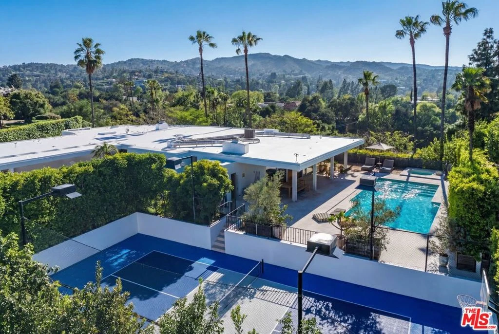 This extraordinary mid-century modern retreat is a masterclass in architectural intention, where soaring ceilings, walls of glass and a seamless connection to the outdoors converge to frame sweeping mountain and valley views. A dramatic entry ushers you into generous, light-drenched living spaces conceived for both quiet daily life and effortless entertaining at scale. The oversized family room anchors the social heart of the home, all opening gracefully to the surrounding landscape.The kitchen is thoughtfully appointed for the serious host, with a sun-washed breakfast area that invites lingering long after the meal is done.Privately positioned and deliberately set apart, the primary suite is a sanctuary in every sense, tranquil views, three walk-in closets, and a dedicated dressing area. The spa bath delivers on every expectation: soaking tub and striking Apparatus Studio fixtures that elevate the everyday into the exceptional. Outside, the grounds are as considered as the interiors, a private pool, spa, sauna, cold plunge and pickleball/sports court, all unfolding against a backdrop of natural beauty designed for year-round enjoyment.Primarily single-level living with lower-level garage access and an in-law suite with separate entrance. Gated entry with generous parking throughout. This is a rare convergence of scale, privacy and enduring design, set in one of the Valley's most coveted addresses.