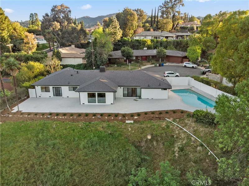 Welcome to 16915 Dormie Pl — a stunning single-level gem in premier Encino boasting 5 spacious bedrooms and 3 beautifully appointed baths. Completely transformed for today’s modern lifestyle, this home marries effortless indoor/outdoor living with high-end craftsmanship and designer finishes. Step inside to an open, light-filled floor plan featuring brand-new engineered hardwood flooring that flows throughout the home. The remodeled chef’s kitchen is a showstopper — equipped with top-tier Café appliances, sleek new countertops, and bespoke cabinetry that elevate every meal. Every corner of the home has been thoughtfully updated, including all new electrical wiring, all-new windows and doors, and designer lighting that creates both warmth and sophistication. Retreat to the luxurious primary suite or any of the four additional bedrooms, each offering comfort and style. The three fully renovated bathrooms feature modern fixtures and finishes with a spa-like feel. Outside, the entertainer’s backyard is a true California paradise — newly landscaped for low-maintenance enjoyment and complete with a refreshed pool with a new pump ready for endless relaxation and gatherings under the sun or stars. Additional upgrades include a brand-new roof and premium finishes throughout — this is modern luxury living at its best. Located in one of Encino’s most desirable pockets, this home is the perfect blend of style, comfort, and convenience. Don’t miss your chance to own this turnkey, beautifully remodeled retreat!