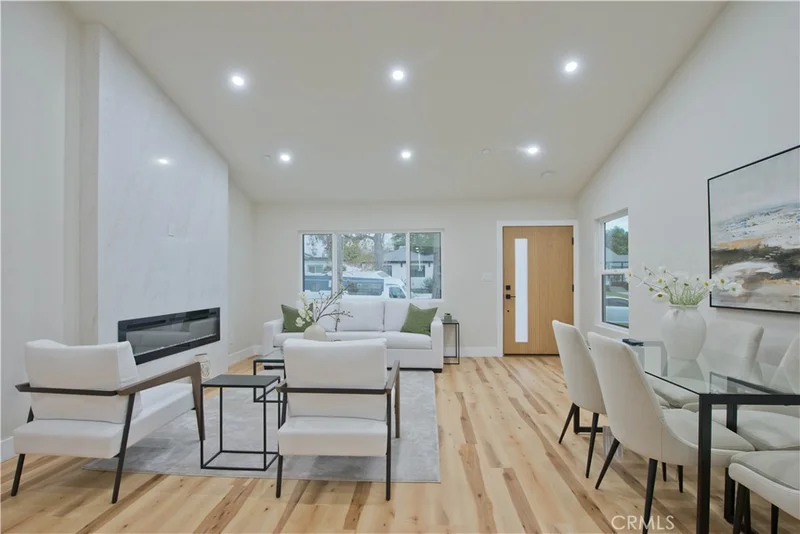 Discover a rare investment and lifestyle opportunity at 17905 & 17907 Bullock St in the highly sought after neighborhood of Encino Park. This thoughtfully upgraded dual-residence property offers exceptional flexibility—perfect for extended families, generating rental income, or living in one home while leasing the other. The main home has been completely remodeled and spans 1,753 square feet with 4 bedrooms and 3 bathrooms. Bright, open, and contemporary, the living room features soaring ceilings, luxury vinyl plank flooring, and a seamless open-concept design ideal for everyday living and entertaining. The chef’s kitchen is a standout, appointed with premium Thor stainless steel appliances, sleek quartz countertops with a waterfall-edge peninsula, a full-height quartz backsplash, walk-in pantry, and convenient pot filler. The living area centers around a striking quartz-framed electric fireplace, creating a warm yet modern focal point. The spacious primary suite serves as a private retreat, complete with a walk-in closet and spa-inspired bath showcasing a soaking tub and designer-tiled shower. Additional highlights include a junior suite, dedicated laundry room, tankless water heater, white stone accents, and a 1-car garage equipped with an EV charger. Built in 2025, the newly constructed ADU at 17907 Bullock St offers 752 square feet with 2 bedrooms and 2 bathrooms. Designed for privacy and efficiency, it features a separate entrance from Oxnard Street, carport parking, laundry hookups, fully electric systems, owned solar panels, and its own tankless water heater—making it an ideal turnkey rental or guest residence. Both homes benefit from extensive upgrades, including new PEX plumbing, a new sewer line, new roofing, central HVAC, fire sprinkler systems, double-pane windows, and LED recessed lighting throughout. Designer finishes elevate the exterior and interior alike, from floating vanities and heated anti-fog LED mirrors to smooth Santa Barbara stucco, modern fencing, and raised garden beds for your home grown vegetables. Conveniently located near Ventura Boulevard’s shops and dining, local parks, farmer's market, this move-in-ready Encino property offers versatility, modern comfort, and long-term value.