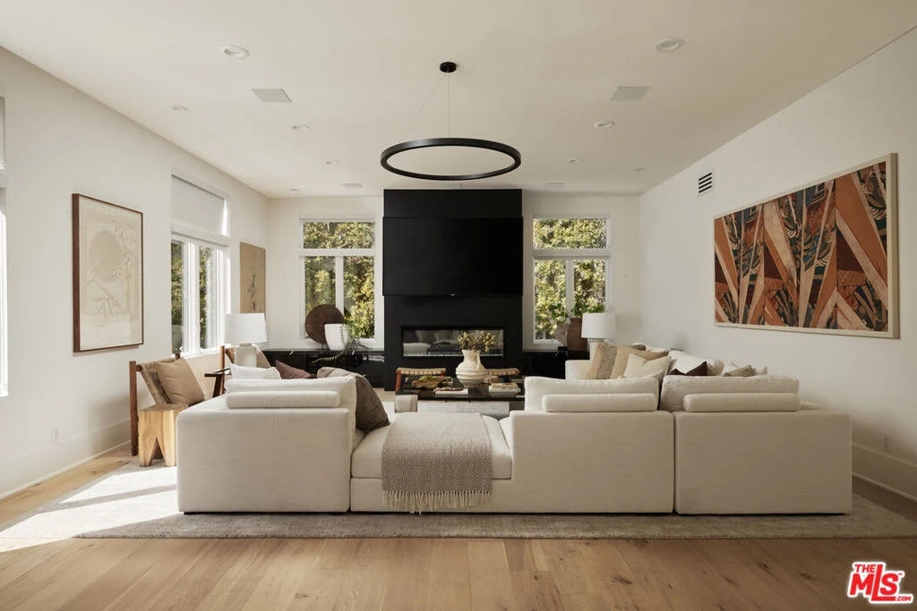 A celebrity-owned, fully renovated modern compound set behind gates and tall hedges on over an acre South of the Boulevard. One of the most compelling values currently available in Encino. A sweeping motor court leads to a striking main residence designed for bold architecture, soaring ceilings, and seamless indoor/outdoor living. Inside, a dramatic double staircase opens to bright living and dining spaces and a chef's kitchen that flows effortlessly to the expansive backyard. The lower level features a rare professional recording studio with a private entrance. Upstairs, five ensuite bedrooms include a luxurious primary suite with dual walk-in closets, a spa-style bath with dual showers, and a private terrace. Resort-style grounds include a newly built pool and spa with waterfall and slide, full-size tennis court, putting green, fire pit lounge, covered outdoor dining with built-in barbecue, and a custom play area. A detached guest house completes the estate with a full gym on the lower level and private guest quarters upstairs. With its scale, amenities, and prime setting, this property represents one of the most compelling estate opportunities and best values currently available in Encino.