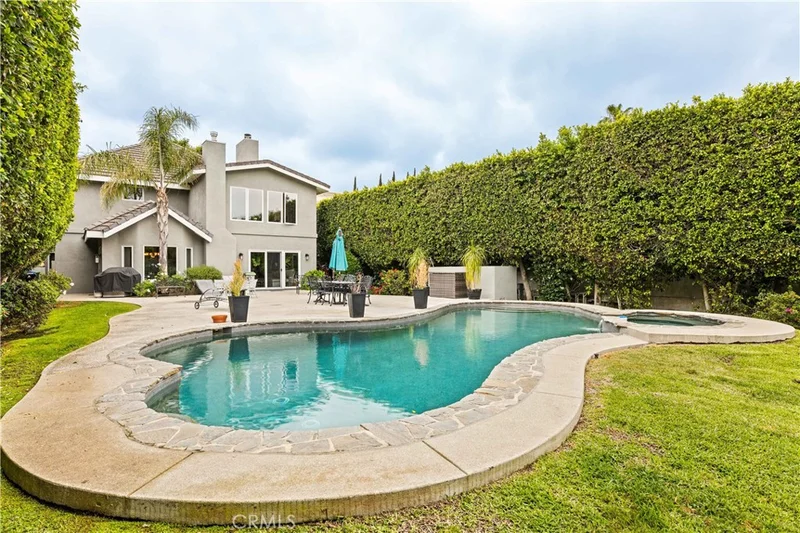 Elegance, Privacy, and Comfort in the Heart of Encino. Nestled in one of Encino’s most coveted neighborhoods, this exquisite gated estate sits on a generous 0.41 ACRE LOT, epitomizing luxury living. With 6 spacious bedrooms and 6 bathrooms, this residence blends refined style with everyday comfort—ideal for sophisticated entertaining and peaceful retreat Step inside to experience a beautifully designed floor plan balancing functionality and comfort. The residence features a formal dining room perfect for elegant dinner parties and a cozy casual dining area for daily gatherings. At the heart of the home, a custom bar serves as a striking centerpiece for effortless entertaining. Additional highlights include two fireplaces and a luxurious primary suite with dual walk-in closets for ample storage and convenience. The home features two separate staircases for privacy and versatility. One leads to a private office or bonus room with a bathroom above the garage—perfect for remote work, creative space, or guest accommodations. The second staircase leads to four well-appointed bedrooms, each with its own bathroom, providing a comfortable and practical layout. The expansive backyard offers potential for an Accessory Dwelling Unit (ADU), with the rear facing a quiet cul-de-sac—allowing a separate private entrance. Whether a guest house, rental unit, or multi-generational living, the possibilities are endless. The gourmet kitchen flows seamlessly into both formal and informal living spaces, bathed in natural light from oversized windows and elegant doors opening to the tranquil outdoors. Outside, enjoy resort-style living on your private 0.41-acre lot, complete with a sparkling pool, jacuzzi, lush landscaping, and a spacious patio perfect for al fresco dining or relaxed lounging. A two-car garage and generous driveway provide ample parking for family and guests. Located minutes from acclaimed restaurants, schools, and boutique shopping. Don’t miss this incredible opportunity to own a home with such exceptional features. Contact us today to schedule your private showing and start envisioning your new home!!