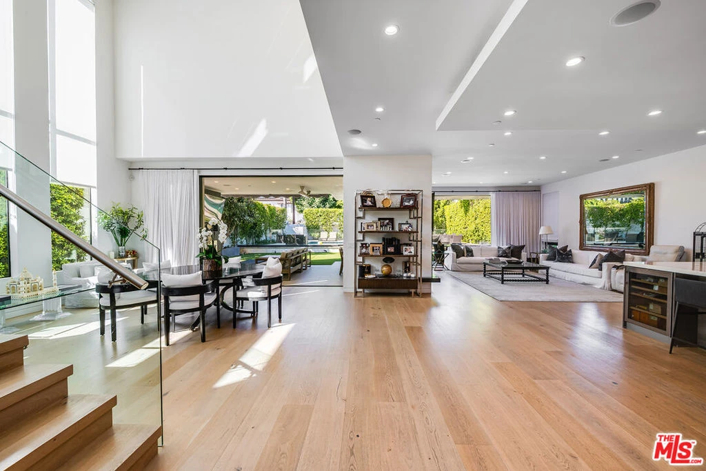 Sleek, custom-built modern masterpiece located on a quiet, tree-lined street in prime Encino. This one-of-a-kind residence showcases high-quality craftsmanship, clean architectural lines, and seamless indoor-outdoor flow across an expansive open layout. A dramatic entry welcomes you into soaring double-height ceilings and walls of glass that flood the interiors with natural light. The main level features wide-plank European oak floors, a spacious great room with fireplace, and retractable glass doors that open to the private backyard oasis. The gourmet kitchen is a showpiece, outfitted with custom European cabinetry, sleek stone countertops, and a large center island. Top-of-the-line appliances include double ovens, dishwasher, microwave, espresso machine, and wine cooler, complemented by a Sub-Zero refrigerator. A formal dining area and covered outdoor living room with fireplace make entertaining effortless year-round. Upstairs, the primary suite offers a private balcony overlooking the lush yard, a fireplace, large walk-in closet, and a luxurious spa-style bath with designer finishes. Each additional bedroom includes its own ensuite bath and walk-in closet. The backyard is a true retreat with a sparkling pool, spa, and manicured landscaping providing ultimate privacy and tranquility. Additional amenities include a two-car garage, surround sound, and security system with cameras. A rare blend of modern elegance and functionality - this exceptional Encino home is the epitome of sophisticated California living.