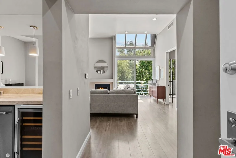 Nestled among the trees, this recently updated top-floor, 2-bedroom, 2-bath condo offers refined living in an unbeatable location of prime Encino. The east-facing residence is filled with natural light thanks to expansive windows and soaring ceilings that enhance the open-concept layout. Warm and tasteful design choices highlight the open living room, while the newly upgraded kitchen showcases premium appliances, a wine refrigerator, recessed lighting, Taj Mahal stone countertops, and more modern comforts. The well-designed floor plan places the two bedrooms on opposite sides for added privacy, and a private balcony with a newly installed sliding door provides a quiet retreat. Both bedrooms feature their own en suite spa-like bathrooms. Additional conveniences include an in-unit high-end stackable washer and dryer, elevator access, two side-by-side secured parking spaces, and dedicated storage. Residents enjoy low HOA dues with their resort-style amenities. Within this intimate 28-unit community, one can find a spa and sauna, fitness and recreation room, guest parking, and 24-hour controlled access. Ideally positioned just blocks from Ventura Boulevard, Encino Commons, Equinox, popular cafes, fine dining, and boutique shopping, this home also offers quick access to the 101 and 405 freeways for seamless commuting. A rare opportunity to live close to everything while enjoying the comfort of a quiet, well-kept community in the heart of Encino. This home deserves a visit, don't miss it!