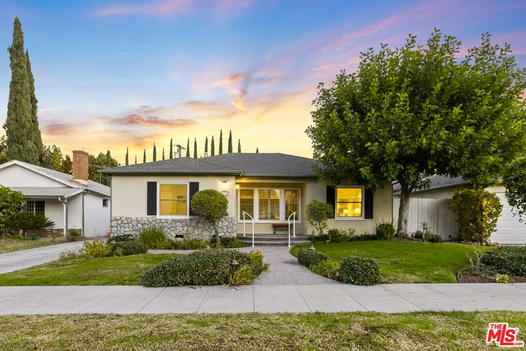A unique opportunity to be South of the 101 in one of 91436's best kept secrets and located in truly one of the greatest neighborhoods in Encino. Neighboring the multi- million dollar homes of Amestoy Estates, and in the Encino Elementary School district, this Ventura Blvd close 3 Bedroom 2 bath home welcomes you in to an inviting front porch with large windows. Ample light brightens this spacious 1,710 ft. home featuring hardwood floors that open to a sitting room, sizable dining area, and family room with French doors anchored by a floor to ceiling entertainment area. Kitchen has stainless steel appliances, granite counter tops, and breakfast area. A front bedroom has ensuite bathroom, mirrored closets, and white shutters. A hallway with two generously sized bedrooms share an updated bathroom with a barn styled door. The large private grassy backyard is perfect for playing or outdoor gathering. A separate sitting area is an ideal spot for a fire pit. The detached garage area could be an ADU conversion or used as a gym. This prime location is close to commuter routes, Gelson's Market, Amazon Fresh, parks, moments to Lake Balboa and public golf courses. A true sense of community, with neighborhood events throughout the year and an exciting annual Halloween party, here is your chance to live in a magnificent home.