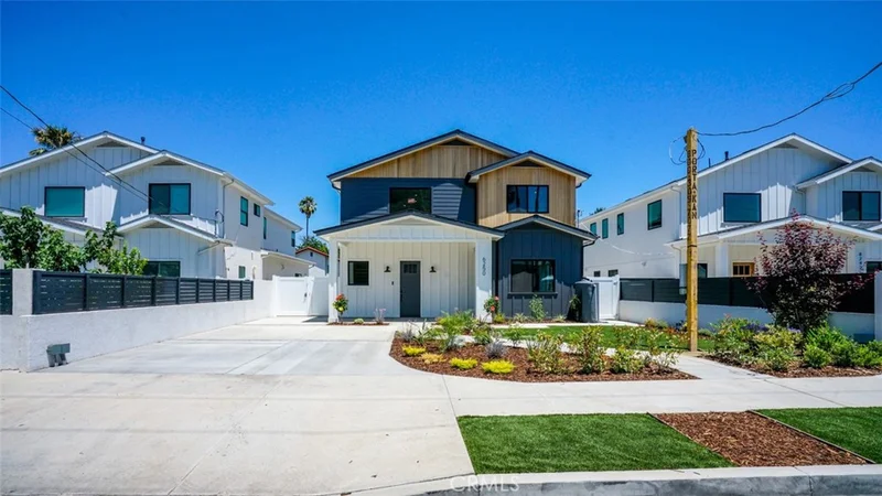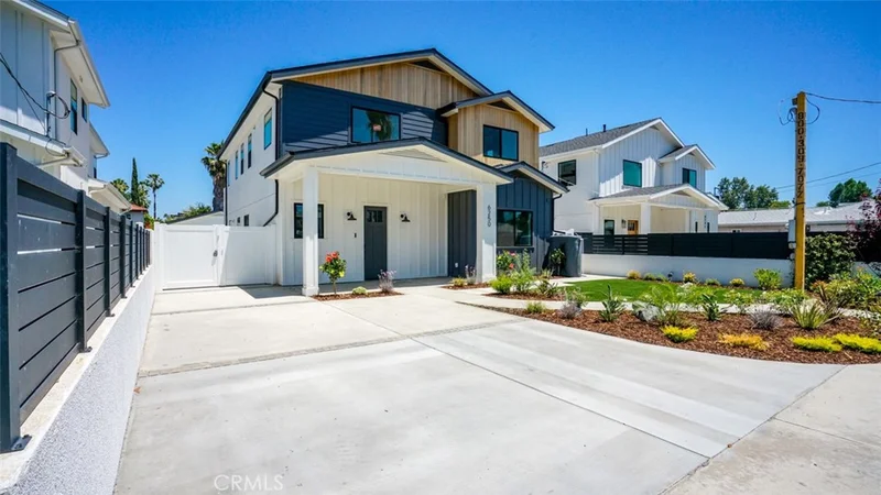 Buyer from previous escrow cancelled with no fault of the property. This absolutely stunning home is new construction that has just been completed! Built new from the ground up, this two story modern farmhouse is the perfect combination of prestige, beauty, and elegance! This 4 Bedroom 4 Bathroom house is simply gorgeous inside and out! Upon entering this house, you will be taken away by the extra tall ceilings, bedroom on the first floor with its own bathroom, half bathroom, and huge great room consisting of the Living Room with fireplace, dining room, and the kitchen. The kitchen is the highlight of this space with a huge island, high end appliances, and large walk-in pantry. The open stairs lead to a large open loft perfect for a home office, den, or sitting area. Once upstairs there are 2 more bedrooms, laundry room, large full bathroom, and the primary bedroom. This massive primary bedroom is an elegant space with a large walk-in closet, balcony for quiet time with a good book and cup of coffee, and the primary bathroom with walk-in shower and freestanding tub. The exterior is beautifully manicured with great curb appeal, and has a finished detached garage in the rear. This property is elegant, charming, and full of character and detail! The lot is almost 9,000 square feet, and consists of this beautiful home, detached garage, and LOTS of additional space for possibly a pool or maybe even an ADU! This is the third and final house in this development, and we saved the best for last! This house is nestled in between two other new house, and the new finished on this property really set it apart from the others! This property will not last long! Information contained within this listing is to be deemed reliable, but not guaranteed. Buyer to perform their own due diligence to satisfy themselves of all information contained in this listing. Some pictures have been enhanced by virtual staging.