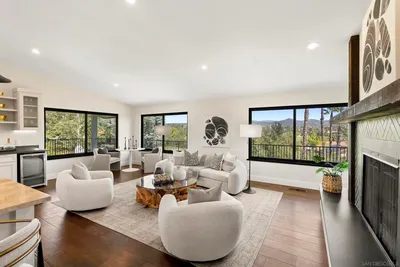 Owned Solar! Views! EV Ready! Stunning 5BR/3BA home in Hidden Meadows featuring soaring ceilings and panoramic golf course/hillside views. Modern layout includes a gourmet granite kitchen, entry-level bed/bath, entry-level bedroom, entry-level office and a spacious family room with custom built-ins. Huge primary suite offers a private fireplace and dual closets. 4 Low-maintenance yard, 220V EV charger, and fully owned solar. Enjoy resort-style living with community pools, tennis, golf, and clubhouse. Your North County retreat awaits!