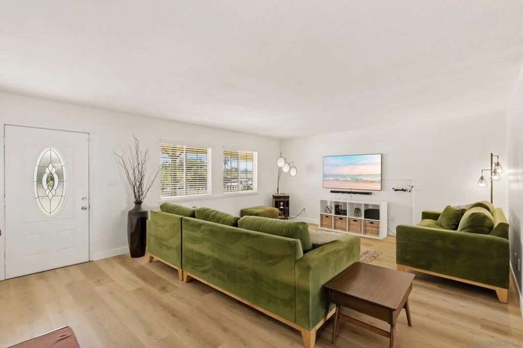 2BR/2BA single story home with bonus room offers incredible value with no HOA fees, newer paid solar and battery, newer roof, new baseboards, new flooring, updated bathrooms, vinyl windows & no HOA fees. Low maintenance, easy-care front and back yards feature large concrete patios, a spacious shed & artificial grass. Chef’s kitchen is equipped with Dacor double ovens, a Thermador six-burner gas stove & freshly painted cabinets. The fenced backyard includes a garden area, covered patio & newer vinyl and wood fencing. Please read Supplement for additional information. This charming home with bonus room, offers incredible value with no HOA fees, newer paid solar, roof and electrical panel, new baseboards and flooring, updated bathrooms, vinyl windows, stainless steel appliances and no HOA fees. The single-story residence boasts great curb appeal with a quintessential white picket fence and low-maintenance, easy-care front and back yards featuring large concrete patios, a spacious shed, and artificial grass. Step inside to find a light-filled home with a spacious chef’s kitchen equipped with Dacor double ovens, a Thermador six-burner gas stove, and freshly painted cabinets. A versatile bonus room—perfect for a home office, third bedroom, or playroom—adds significant flexibility to the floor plan. Outdoor living is effortless with a large, fenced backyard that includes a garden area, a covered patio, and newer vinyl and wood fencing installed in 2023 and 2026 (except the southwest corner which was installed previously). Energy efficient dual-pane vinyl windows, and ceiling fans in the bedrooms and dining area add to the benefits. Don't miss this rare opportunity to own this move-in ready home situated within the highly sought-after San Marcos school district and close to restaurants and shopping. This property is truly a turn-key gem.