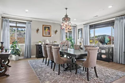 Welcome to the developer’s model residence in the prestigious Pradera community, ideally situated on an oversized cul de sac lot surrounded by rolling hills. This elegantly designed two story home offers 5 bedrooms and 4 bathrooms, including a private main level bedroom suite ideal for guests or multigenerational living. Spacious three car tandem garage with additional storage. Thoughtfully designed for both luxury and functionality, the open concept floor plan features a grand great room that flows seamlessly into a chef’s kitchen, creating a sophisticated yet comfortable environment for everyday living and elevated entertaining. This beautifully appointed two story residence offers 5 bedrooms and 4 bathrooms, including a versatile main level bedroom and full bath ideal for guests or multigenerational living. Spacious three car tandem garage with additional storage. The open concept layout features a great room that seamlessly connects to the gourmet kitchen, dining area, and breakfast nook, creating an ideal setting for both everyday living and entertaining. The chef’s kitchen is appointed with soft close cabinetry, granite countertops with farmhouse sink, full height designer backsplash, walk in pantry, and premium GE Profile stainless steel appliances including double ovens and refrigerator. Upstairs, the expansive primary suite offers a spa inspired bathroom and generous walk in closet. A large loft provides additional flexible living space perfect for a media room, office, or playroom. The private backyard is designed for comfort and enjoyment, offering a true extension of the home’s indoor outdoor lifestyle.