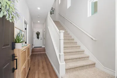Stunning home in Harmony Grove Village, perfectly positioned with serene park views. Thoughtfully designed with high-end finishes and custom upgrades throughout. Brand-new luxury vinyl plank flooring. Stylish electric fireplace with a striking stone accent, creating a warm and modern living space. The versatile first-floor room provides the perfect flex space ideal for a home office, hobby room, or an optional fourth bedroom. Enjoy indoor-outdoor living with an upper patio and spacious side patio with a grass yard. The oversized garage features high ceilings and abundant storage space. Owned solar.