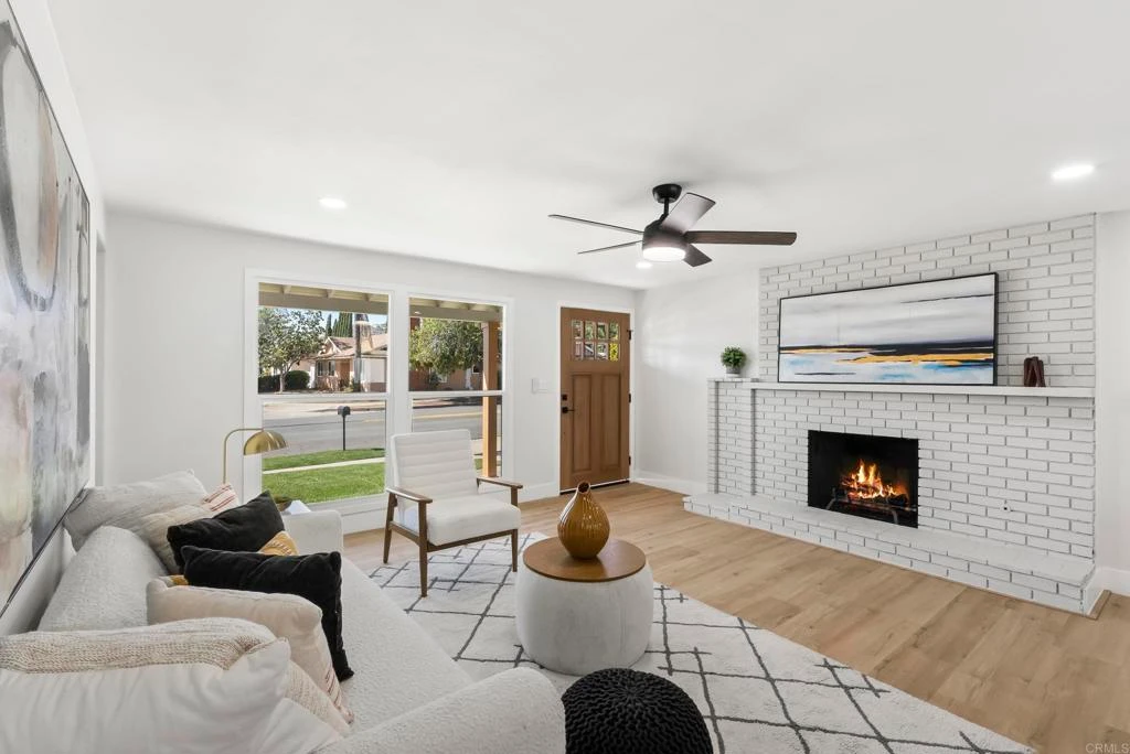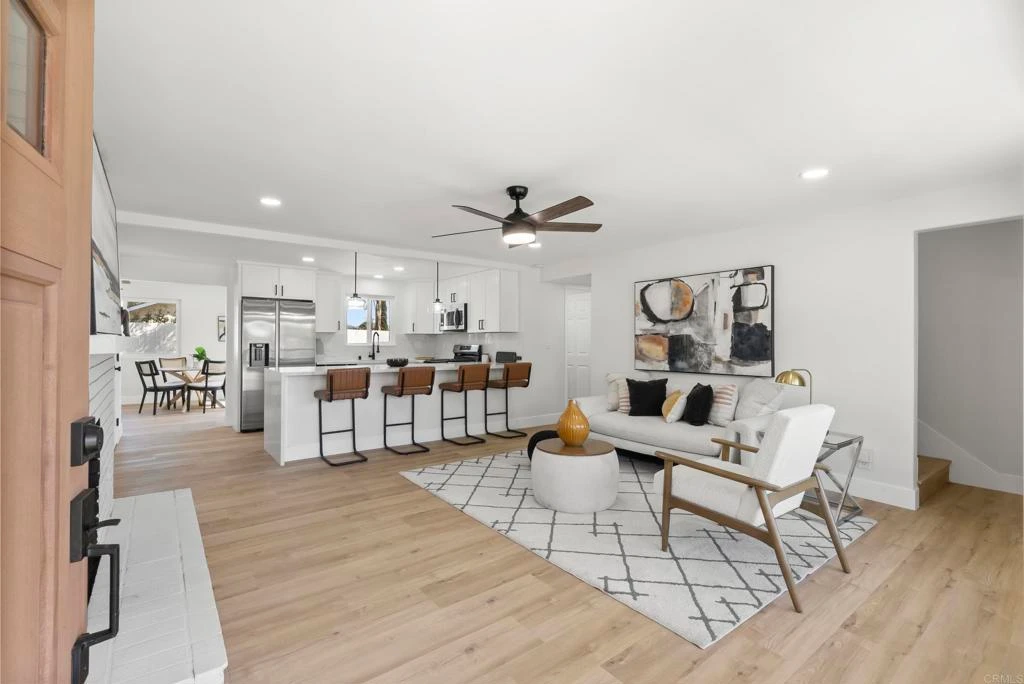 Completely reimagined from top to bottom, this stunning home boasts a sparkling backyard pool & a spacious, flat lot with secured RV parking. Located in desirable Northeast Escondido near Dixon Lake, this is a rare opportunity to own a stylish remodeled home with the substance to match! The open-concept layout is filled with natural light & highlighted by wide-plank flooring, fresh designer finishes, recessed lighting, & brick-surround fireplaces. The all-new kitchen features quartz countertops, custom cabinetry, & SS appliances. The primary suite is a true retreat with its own fireplace, high ceilings, & ensuite spa-like bath. Outside, enjoy newly refreshed landscaping, updated fencing, & a remodeled pool with new equipment. Major improvements include new dual-pane windows, new HVAC, new roof, updated plumbing & electrical, & fresh interior & exterior paint. Just a short drive from the Safari Park, Grand Avenue, dining, freeways, & more!