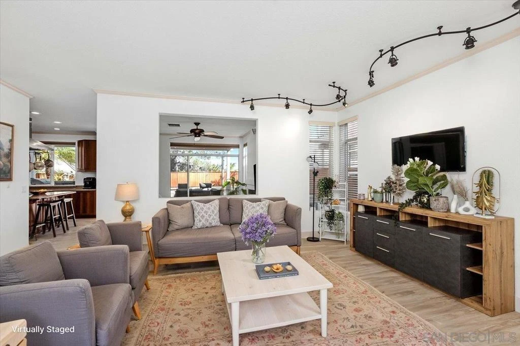 THIS IS A SHORT SALE, subject to lender approval. This home has main character energy. Even though it’s located in Escondido, it’s zoned for the award winning San Marcos School District . Set in the24/7 guard gated community of Emerald Heights, this 4 bedroom 3 bathroom stunner also includes an optional fifth bedroom currently used as a spacious loft, perfect for a playroom, office, or upstairs lounge space where the kids can be loud and the adults can pretend not to hear it. It has the space, upgrades, and lifestyle perks you’ve been manifesting. Downstairs has been completely refreshed with brand new luxury vinyl plank flooring, new light fixtures, and new windows that let the sunshine pour in like it's being paid to. The kitchen opens right into the family room and out to the backyard where a peaceful water feature and relaxing spool are waiting to elevate your weekends. Upstairs you’ll find four legit bedrooms, the loft, and two full bathrooms. Newer paint and carpet keep everything feeling fresh. Leased solar keeps things efficient and affordable. The dining area brings the drama with a showpiece light fixture, ready for everything from takeout nights to holiday dinners. Living in Emerald Heights means access to an Olympic size pool, spa, toddler pool, renovated clubhouse and gym, tennis and basketball courts, on site management, and nonstop community events. Think Music at Sunset, pool parties, holiday events for kids and grown ups, Easter with the Bunny, casino night, and more.