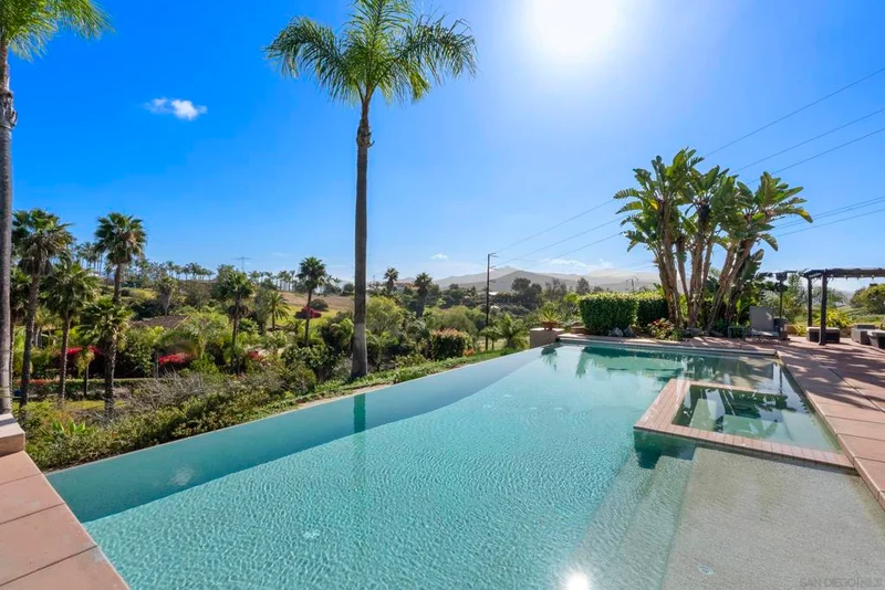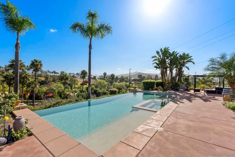 Set behind sweeping natural landscapes, 2821 Summit Drive is a rare Mediterranean ranch estate where refined architecture meets the quiet grandeur of North County’s rolling hills. Situated on two private acres, this single-level residence embodies effortless sophistication, offering an elevated lifestyle defined by space, privacy, and timeless design. Sunlit interiors unfold seamlessly into expansive outdoor living areas, creating a fluid connection between home and horizon. At the heart of the estate, a saltwater infinity-edge pool frames panoramic views, transforming every sunrise and sunset into a cinematic experience. The grounds provide a canvas for bespoke living — from curated gardens and outdoor entertaining spaces to vineyard-inspired possibilities and an orchard featuring over 30 fruit trees (15 varieties). Thoughtfully designed for both intimate moments and grand gatherings, the residence balances warmth with scale and luxury with tranquility. Ideally positioned for serene seclusion yet moments from the conveniences of North County San Diego, this exceptional property represents a rare opportunity to own a private retreat where architecture, nature, and lifestyle converge. Amazing single story Mediterranean ranch with an infinity edge pool, 30 fruit tree orchard, PAID SOLAR and 16 chickens (14 hens / 2 roosters) included. Possibilities are endless! Luxury, convenience, privacy and views all converge in this rare opportunity to own a piece of paradise. Entire exterior painted in January 2026.