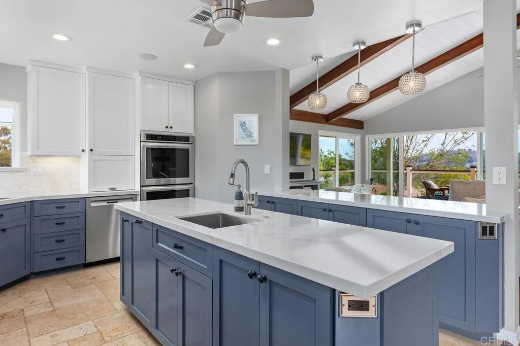 Decks for Days and Views for miles! Like to entertain? This home is made for it. Set on over half an acre, this beautifully maintained property offers sweeping views from multiple balconies and decks at both the front and back of the home. The front yard features a colorful, low-maintenance desert landscape, while the backyard offers an expansive multi-level deck, a custom BBQ island, shade structures, a storage shed, and incredible “forever” views. Inside, the home feels warm, open, and thoughtfully crafted. Soaring ceilings with rich wood beams create a luxurious first impression, complemented by gorgeous wood flooring throughout. The kitchen is well appointed with upgraded appliances, an island with newer countertops, and bar seating. The living room offers sit down views and a cozy fireplace, while the spacious dining area opens directly to the outdoors for easy al fresco dining. The primary suite is a true retreat, complete with a fireplace, deck access, and a well-appointed bath. On the lower level, you’ll find a large bonus room with its own bath—ideal for multi-generational living, a gym, a craft room, or a private workspace. It has both interior and exterior access, plus its own patio. Additional upgrades include paid-off solar, fresh interior and exterior paint, a new driveway, a hot-water recirculation line, solid-wood doors, and updated secondary baths. The location is just as appealing—close to the community pool and tennis courts, and a short walk to local restaurants, shops, and Boulder Oaks Golf Course. Hidden Meadows offers a peaceful, rural feel with quick access to the 15 freeway, making it one of North County’s best kept secrets.