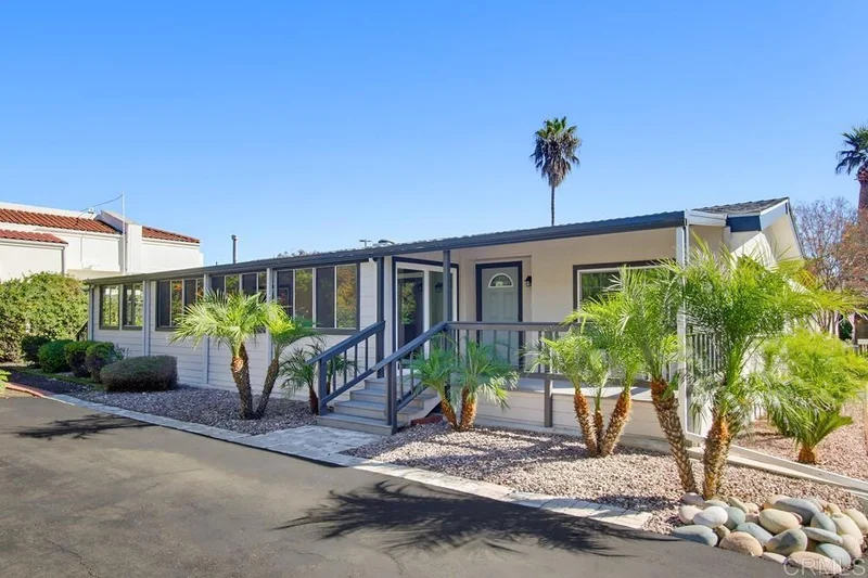 Turnkey two bedroom and two bath house in Rancho Escondido. The open floor plan and vaulted ceilings make this home feel very spacious. The kitchen has wonderful two tone cabinets, quartz countertops, a center island, a single basin sink, and stainless steel appliances. The home has been drywalled throughout as well as plank vinyl flooring in the main living areas. The primary bathroom has a dual vanity with quartz counter tops and a beautiful walk-in tiled shower. A new HVAC system and vinyl dual-pane windows will keep this home comfortable. The home has a new roof. There is a shed to store your extra items. The home has a 433A foundation. Rancho Escondido is a 5 star 55+ gated resident owned community in North County with a very active social community, a beautiful clubhouse, two pools, and a spa. Own your own land & home! No space rent! The HOA is only $350 and includes water, sewer, trash, basic cable, and common grounds.