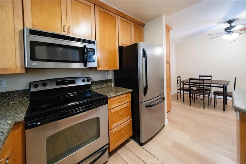 Beautifully updated ground-level condo with a private covered patio overlooking a tranquil greenbelt. Features include a remodeled kitchen with Silestone countertops, maple cabinetry, and stainless steel appliances, along with laminate flooring, fresh interior paint, dual-pane windows, and a cozy fireplace. Bright, functional layout with in-unit laundry and assigned parking. Moving-in ready and conveniently located near shopping, dining, and major freeways.