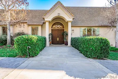 Breathtaking farmhouse estate located within the guard-gated community of Rolling Hills Estates. Situated on over 4 acres of flat, expandable up to 4 horses, usable equestrian land, this exceptional property offers two turnout pastures w/ double-fencing for horses, a barn, paid solar w/back up batteries, irrigation well, and a newly built pool/spa. Live off the Grid! The owners have invested over $500,000 in recent upgrades to both the home and grounds. The residence blends peaceful farmhouse charm with refined architecture and impeccable craftsmanship throughout. Offering 4 bdrms and 3 baths, the primary suite is conveniently located on the main level and features spa-like finishes and two spacious walk-in closets. Exceptional storage inside and outside of the home. Natural light fills the home during the day, while thoughtful lighting enhances the ambiance at night. The chef’s kitchen is designed for both everyday living and entertaining, complete with high-end appliances, ample counter space, and a center island—perfect for gathering with family and friends. Upstairs, two additional bedrooms provide privacy and separation for guests. Step outside to a private resort-style setting with a pool and spa overlooking expansive green pasture views. Outdoor amenities include cobblestone pool decking, a bocce ball court, multiple serene spaces designed for relaxation. The barn features two stalls, a tack room, bathroom w/shower, feed shed, wash rack, and potential for an upstairs ADU. Located adjacent to community riding trails and the equestrian center. Rolling Hills Estates