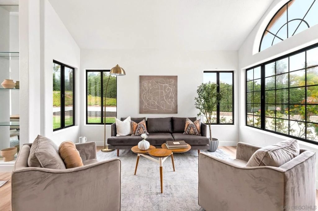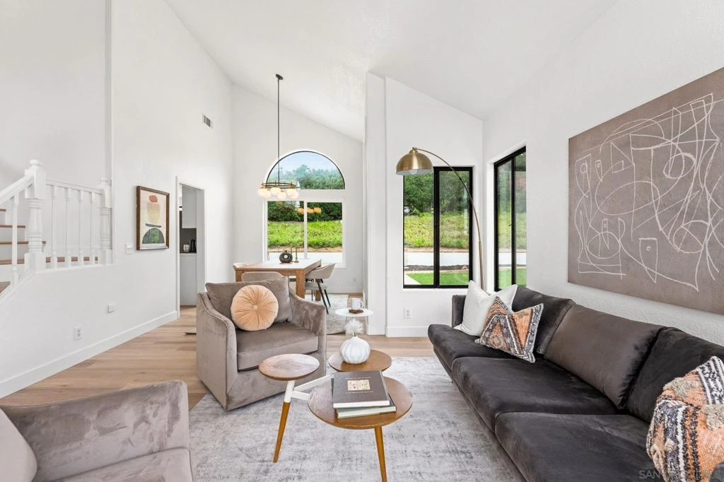 Perched at the highest point of a quiet, premier cul-de-sac, this is more than a home, it is a private sanctuary. Enveloped by the rolling hills and famous avocado groves of Fallbrook, this property offers a rare sense of elevation and seclusion. Here, the "hustle and bustle" feels worlds away, replaced by cooling breezes and an expansive backyard oasis designed for true California indoor-outdoor living. Inside, the home has been meticulously reimagined with a designer’s eye. Every surface feels intentional, from the crisp new flooring to the fresh, sophisticated palette that carries through every room. The heart of the home features brand-new slab countertops in the kitchen and all three bathrooms, complemented by striking designer lighting in the entry and formal dining spaces. The primary ensuite serves as a private spa, recently transformed with a stunning, never-used walk-in shower featuring dual showerheads, high-end slab finishes, and bespoke tile work. With five generous bedrooms and three full baths, the floor plan is as functional as it is beautiful. The dual fireplaces, located in both the upstairs and downstairs living areas have been artfully redone, providing a warm focal point for every season. This is a home that looks forward. A large lot with infrastructure already set for your future ADU. A 3-car garage as well as a Tesla charger, supported by a solar panel system, ensuring your retreat is as efficient as it is elegant. Discover the lush landscapes and small-town charm that make Fallbrook one of San Diego’s most coveted inland gems.