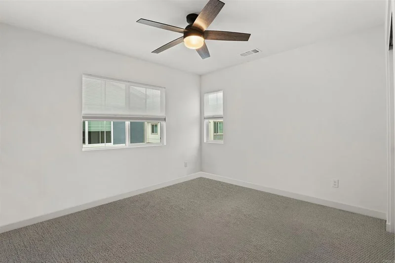 Welcome to modern living in the heart of Fallbrook’s scenic hills. Built in 2023 and located in the highly desirable Citro master-planned community, this beautifully designed duet-style home offers 4 bedrooms, 2.5 bathrooms, and 1,668 square feet of bright, thoughtfully designed living space. Surrounded by rolling landscapes and historic citrus and avocado groves, the home delivers the perfect balance of peaceful surroundings and everyday convenience. The main level features an open-concept layout ideal for both relaxing and entertaining, with a stylish, well-appointed kitchen that flows seamlessly into the dining area and living room. Just off the dining space, enjoy a private patio with pavers—perfect for outdoor lounging, container gardening, or al fresco dining. A convenient first-floor powder room is ideal for guests. Upstairs, the spacious primary suite offers a comfortable retreat with a spa-inspired bathroom, dual vanities, and a generous walk-in closet. Three additional bedrooms are well positioned and offer excellent storage, while a large upstairs laundry room adds everyday convenience. Additional highlights include upgraded blackout blinds, energy-saving solar integration, central air conditioning, and on-demand hot water. An attached two-car garage and select views of nearby parks and surrounding hills add to the home’s appeal. Residents of Citro enjoy access to exceptional community amenities, including a resort-style pool and spa, clubhouse, miles of hiking and biking trails through preserved open space, playgrounds, bocce courts, dog park, picnic areas, and community gardens. Comfort, efficiency, and community come together beautifully in this move-in ready home.
