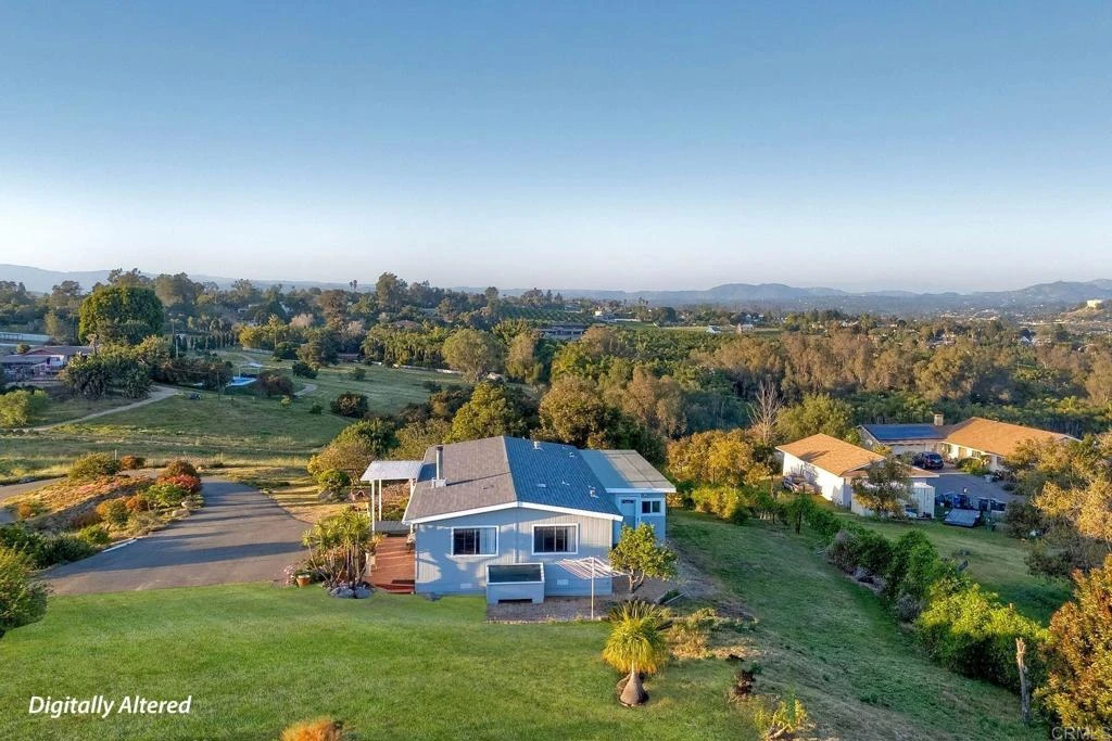 Some properties you buy with your head. This one you buy with your gut the moment you see that view. Stand on this Fallbrook hilltop and watch mountain ranges stack behind orchard valleys while the sun drops below the ridge in colors you'll stop mid-sentence to look at. The sellers have been chasing these sunsets for decades. You'll understand why the second you arrive. Property has several building pads sites already on the property. Property can be Spit into Estate size Parcels , Water, Electric, Extra Water Meters are available already paid for. See Document Section of Listing. Five fully fenced acres. No HOA. Agricultural zoning. Single-story 3-bedroom, 2-bath double-wide with an enclosed sunroom, new roof installed August 2025, solar panels, solar hot water, and a wood-burning stove for heat. No traditional AC needed — the property is naturally cooled by the ocean breeze. The kind of home that lives bigger than its footprint because the outside is the home. Then there's the land. 124 trees including 44 macadamia, 32 cherimoya, citrus, lemon, grapefruit, kumquat, dragon fruit, passion fruit, apple, olive, pine, lilacs, and bougainvillea. Three engineered buildable pads documented on the parcel map. A 16-foot tall metal workshop, 36x50 feet, with two drive-in doors, perfect for a serious car collection, equipment, or the kind of workspace most people only dream about. Two cargo containers included. Electric entry gate. 360-degree views stretching 100-plus miles in every direction. Sunrise and sunset, both spectacular. Public water and electric already on-site. The parcel map carries a notation worth a conversation: a possible parcel split. Buyers with an eye for land value and long-term flexibility are encouraged to explore options with San Diego County Planning. Buyer to verify all development possibilities with San Diego County PDS. No approvals have been obtained. Ten minutes to downtown Fallbrook. Five minutes to Bonsall shopping, dining, and movies. Twelve minutes to the I-15. Properties like this, five hilltop acres with panoramic views, a working orchard, a massive workshop, no HOA, and a new roof, don't come around at this price point. Call Richard Eisendrath to schedule your private walkthrough before someone else does. Buyer to verify all zoning, permits, land use, and development possibilities with San Diego County Planning and Development Services prior to close.