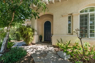 Welcome to this beautiful and unique home in the exclusive gated and sought after Peppertree Park neighborhood. This home is an Entertainers dream. The family is back from England and the property is now back on the market and ready to sell with a lower price! Located at the end of the cul-de-sac on the best street, with lush landscaping and privacy on a large lot , this home has it all! A remodeled gourmet kitchen featuring a 6 burner Thermador range with griddle and hood, undercabinet lighting, pull out drawers in the pantry, granite counter tops, stainless steel sink, double oven, and Kitchen Aid refrig. An adjoining alcove with a coffee station and wine bar add an unexpected and convenient feature for entertaining. The dining room opens up to the outside with French doors allowing for an alfresco feel. This home is great for families or retirees having a downstairs bedroom and full bath. The combination of plantation shutters, hardwood and stone floors and high vaulted ceilings give a warm open feel. The cozy living room has a fireplace and is great for reading and fireside chats. The kitchen opens into the family room as a great room and has the 2nd fireplace and surround sound. From there the sliding glass door opens on to the outside entertaining area, with a built-in BBQ with new burners, a sit-up bar, covered dining area and plenty of seating and lounging near the pool and firepit. The saline pool and jacuzzi have a gorgeous waterfall with a new pump, cholinator and heater. Upstairs the primary suite is large enough to have the 3rd fireplace and seating area and opens to a private covered deck. The suite has an upgraded bath with stone countertops, a walk-in shower and soaking tub, and a built-in closet .Two additional bedrooms upstairs plus an office/den and library nook provide all the space you’ll need for entertaining family and friends. A new $12,000 air conditioning system with a state-of-the-art Nest is app controlled. Tree lined streets are perfect for an evening walk to the community park. The oversized 3 car garage has built-ins with pleny of storage and workspace. Additional features include; an automated irrigation system,whole house interior fan for cooling without air conditioning, a Ring alarm system with cameras and a whole house water softener. This is an amazing house and will not last!